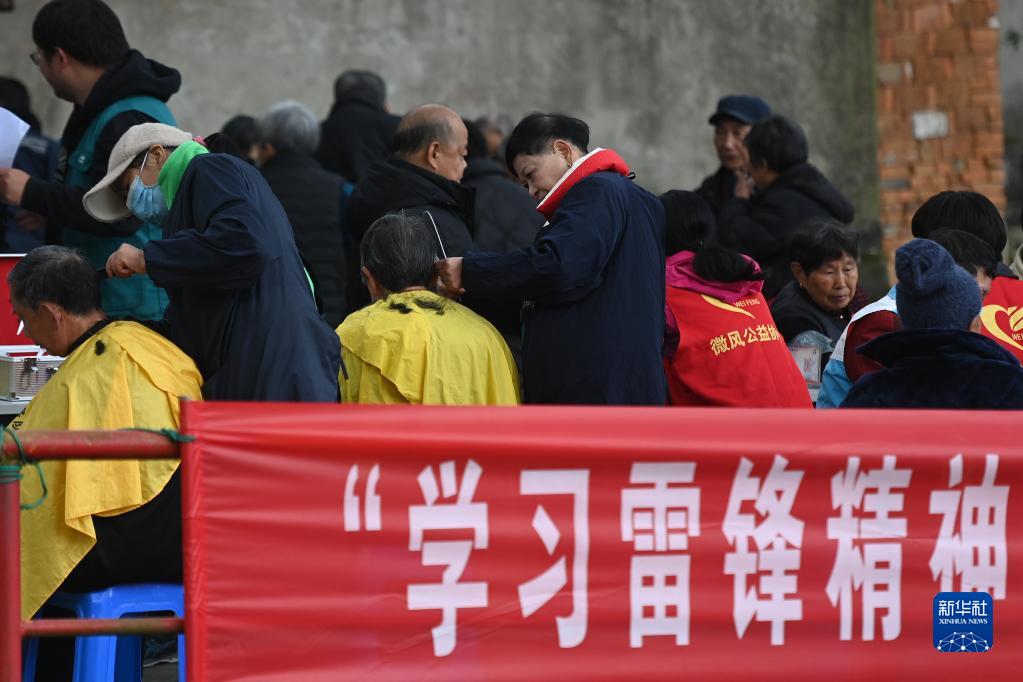 3月1日,志愿者在寧波市奉化區(qū)錦屏街道城西岙村免費為村民提供理發(fā)等民生服務。