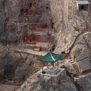 這是寧夏須彌山石窟局部外景(2月28日攝,無人機照片)。