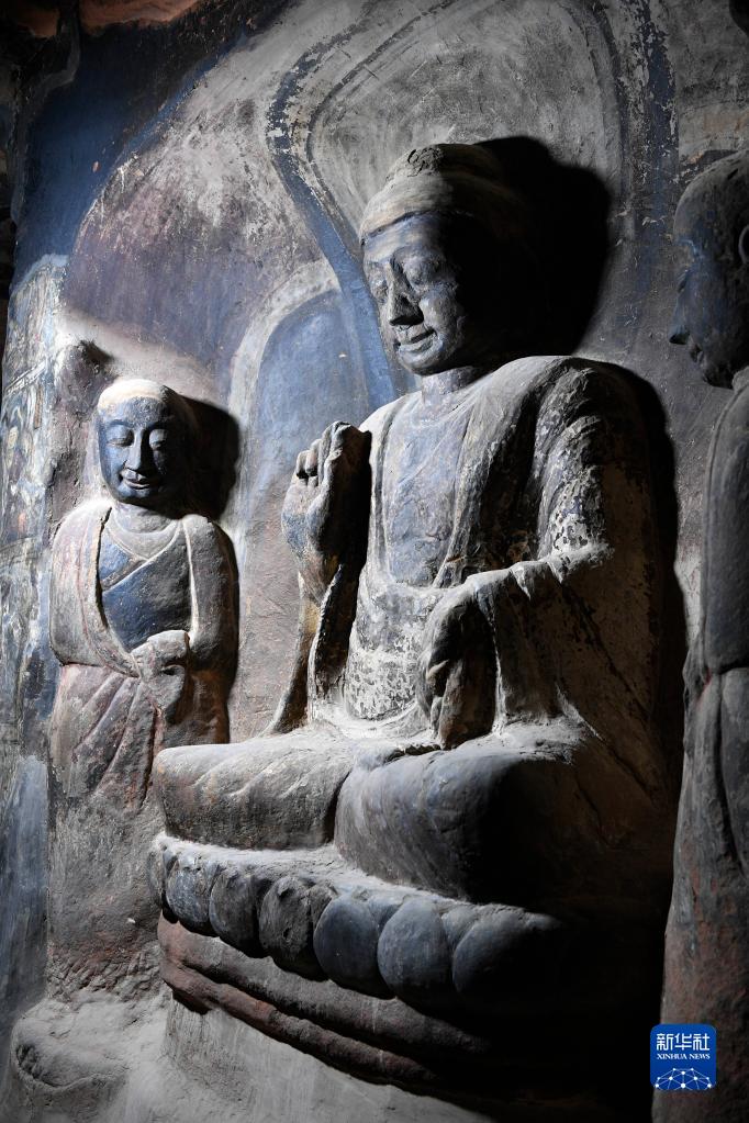 這是寧夏須彌山石窟圓光寺48號窟內完成修復的佛像(2月28日攝)。