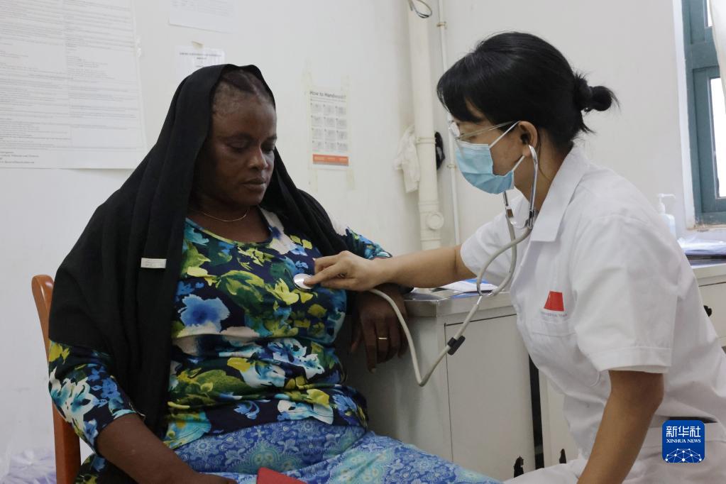 2月27日,在位于塞拉利昂首都弗里敦市郊的塞拉利昂-中國友好醫院,一名中國醫療隊醫生為患者檢查身體。