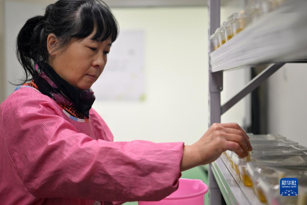 在中農(nóng)熊蜂繁育基地,工作人員在調(diào)制營養(yǎng)液(3月1日攝)。