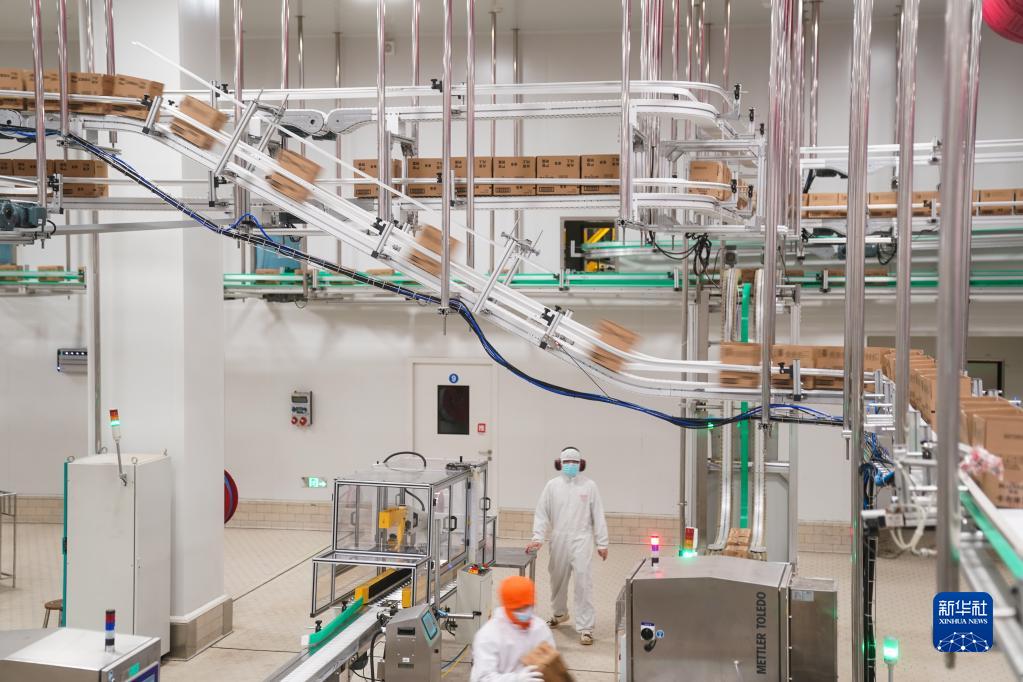 聯合利華和路雪太倉生產基地車間內的立體輸送網絡(3月1日攝)。