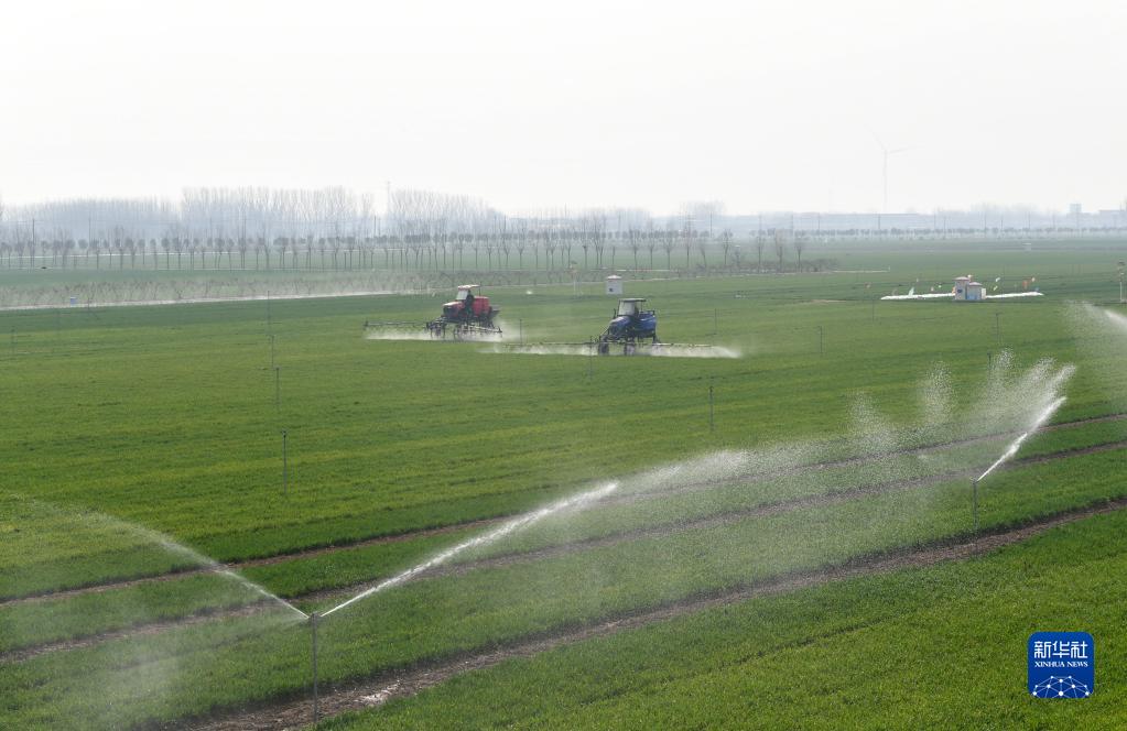 春耕時節(jié),河南各地小麥主產(chǎn)區(qū)農(nóng)民抓緊農(nóng)時,給小麥澆灌、施肥、病蟲害監(jiān)測等田間管理,一派繁忙景象。