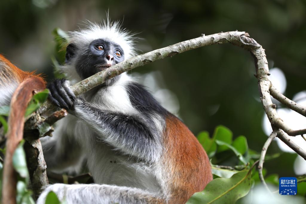 這是2月24日在坦桑尼亞桑給巴爾島拍攝的桑給巴爾紅疣猴。