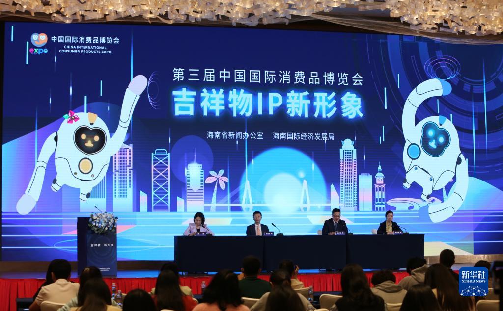 當日,第三屆中國國際消費品博覽會吉祥物IP新形象新聞發布會在海口舉辦。以高新科技、先進制造、本土文化為設計理念,在往屆吉祥物“元元”和“宵宵”的基礎上進行拓展設計而打造的吉祥物IP新形象“機械猿”正式亮相。