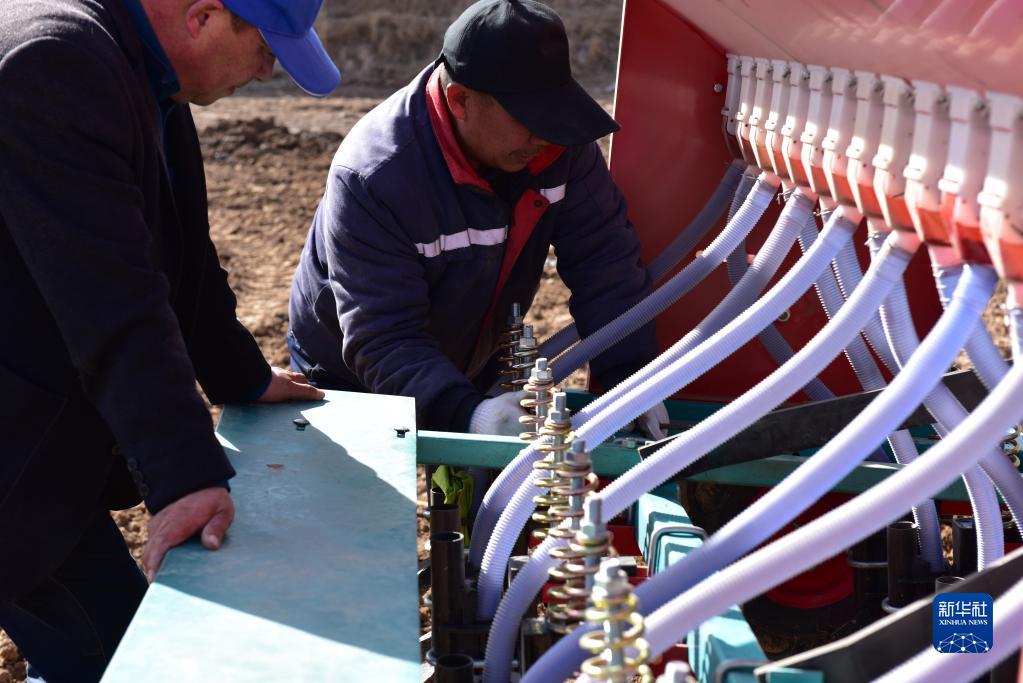3月3日,在寧夏銀川市賀蘭縣立崗鎮(zhèn)銀星村,農(nóng)民調(diào)試農(nóng)機(jī)。