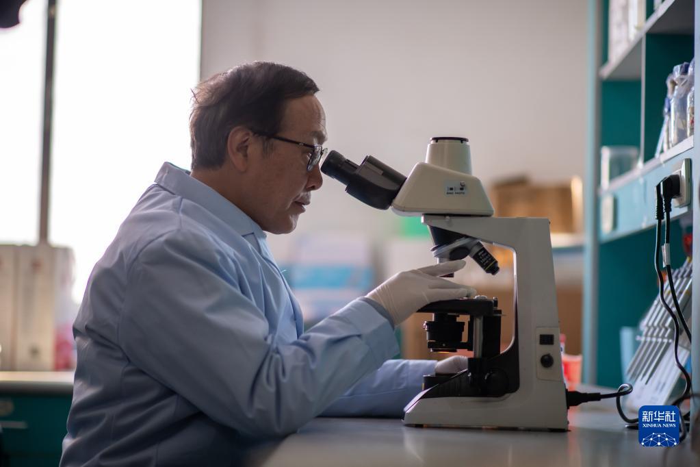 2月6日,全國(guó)人大代表、中國(guó)科學(xué)院院士、云南大學(xué)云南生物資源保護(hù)與利用國(guó)家重點(diǎn)實(shí)驗(yàn)室主任張克勤在實(shí)驗(yàn)室用顯微鏡觀察線蟲。