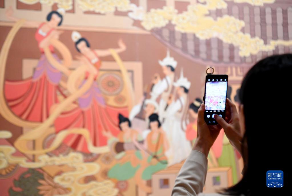 游客在洛陽市應天門遺址博物館內(nèi)參觀拍照(2月28日攝)。