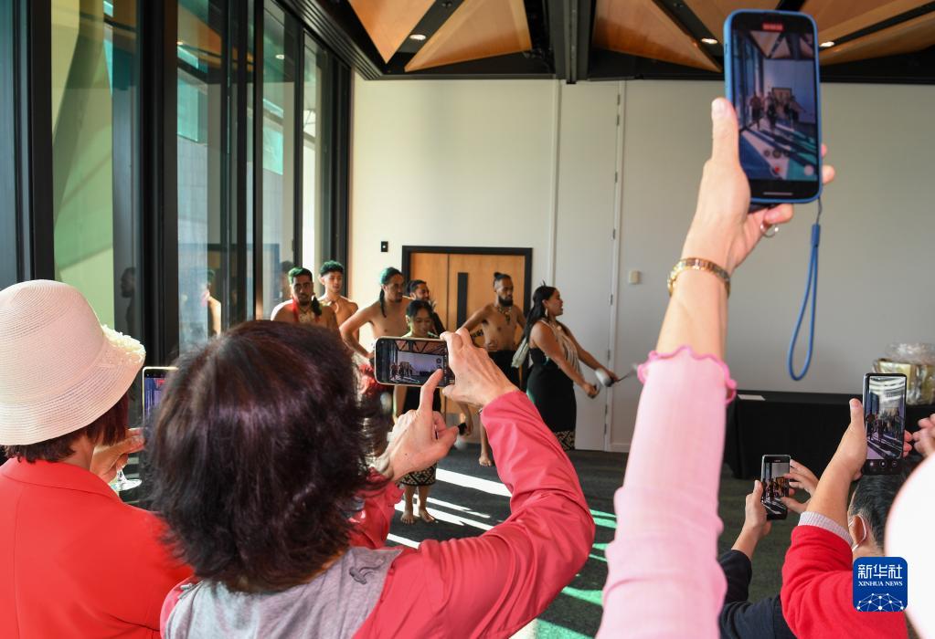 3月3日,在新西蘭奧克蘭國際機場,來自中國的團隊游客參加新方組織的歡迎儀式。