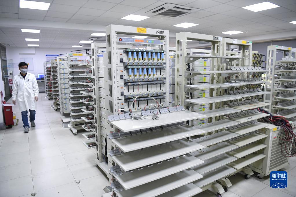 3月3日在廣州天賜高新材料股份有限公司實驗室拍攝的正在運行的高性能電池檢測系統。