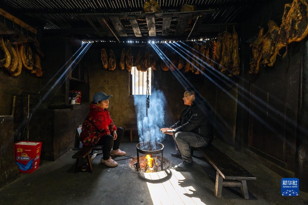 2月14日,鄭望春(右)在村民甘紹芝家中了解她家生產生活中需要解決的問題。