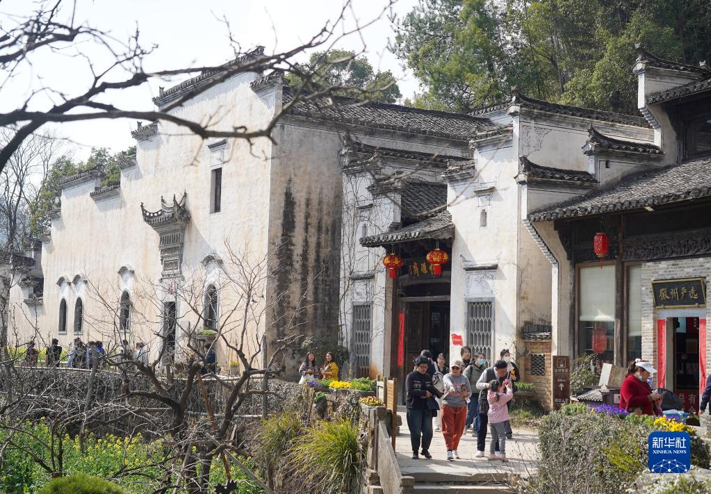 近日,隨著氣溫回暖,江西婺源迎來賞花季,花海層疊掩映在白墻黛瓦間,吸引游客前來踏青賞花,享受美好春光。