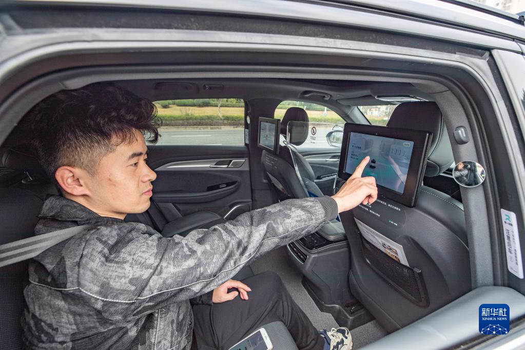 3月3日,在重慶市永川區,乘客搭乘百度Apollo自動駕駛出行服務車。
