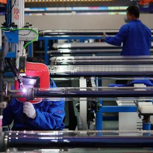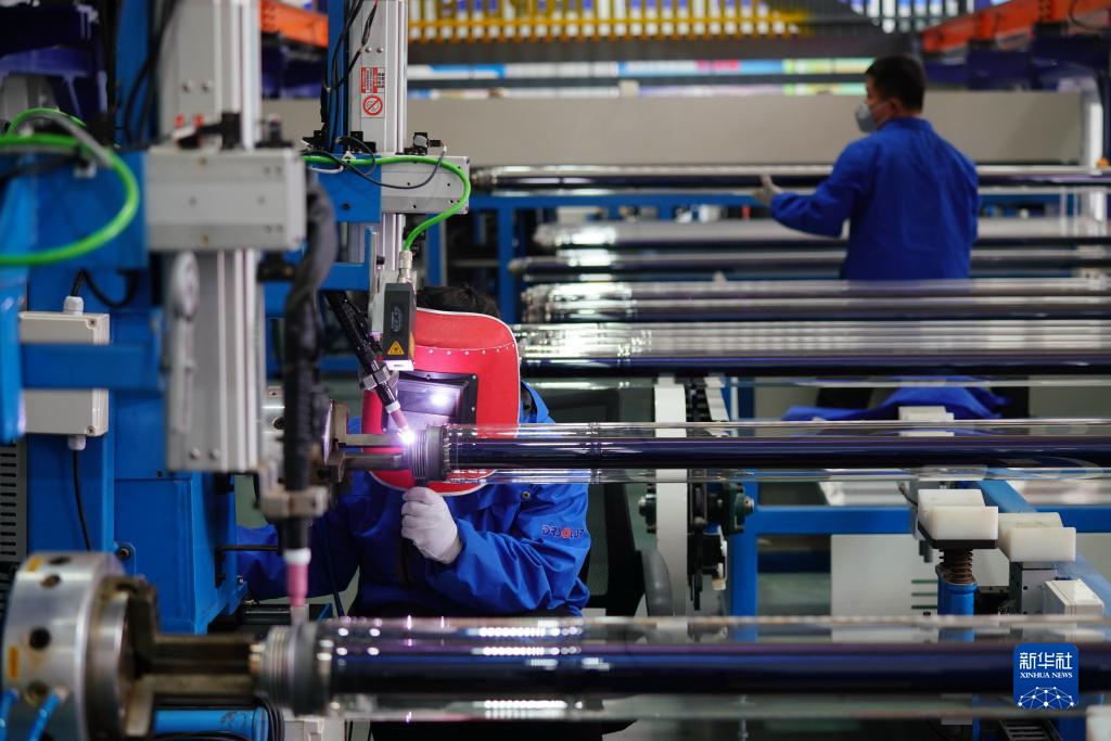 3月3日,河北省威縣一家新能源科技企業的員工在中高溫集熱管生產線上作業。