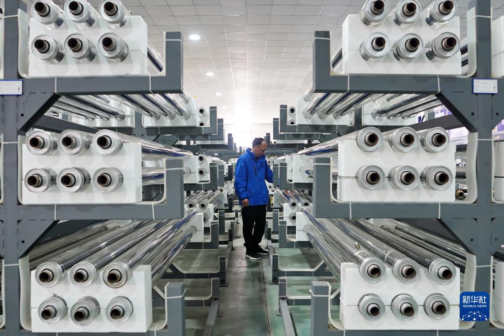 3月3日,河北省威縣一家新能源科技企業的員工在檢查中高溫集熱管產品質量。
