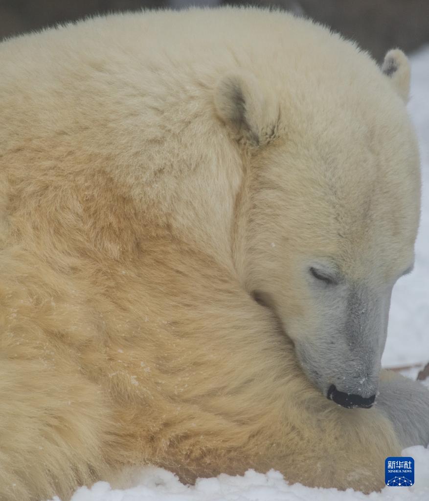 這是2月25日在俄羅斯莫斯科動(dòng)物園拍攝的北極熊迪克森。