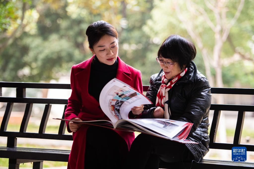 3月1日,在湖南雷鋒紀(jì)念館,張璐琪(左)翻著相冊(cè)聽著母親譚荒芳分享過去宣講雷鋒精神的故事。