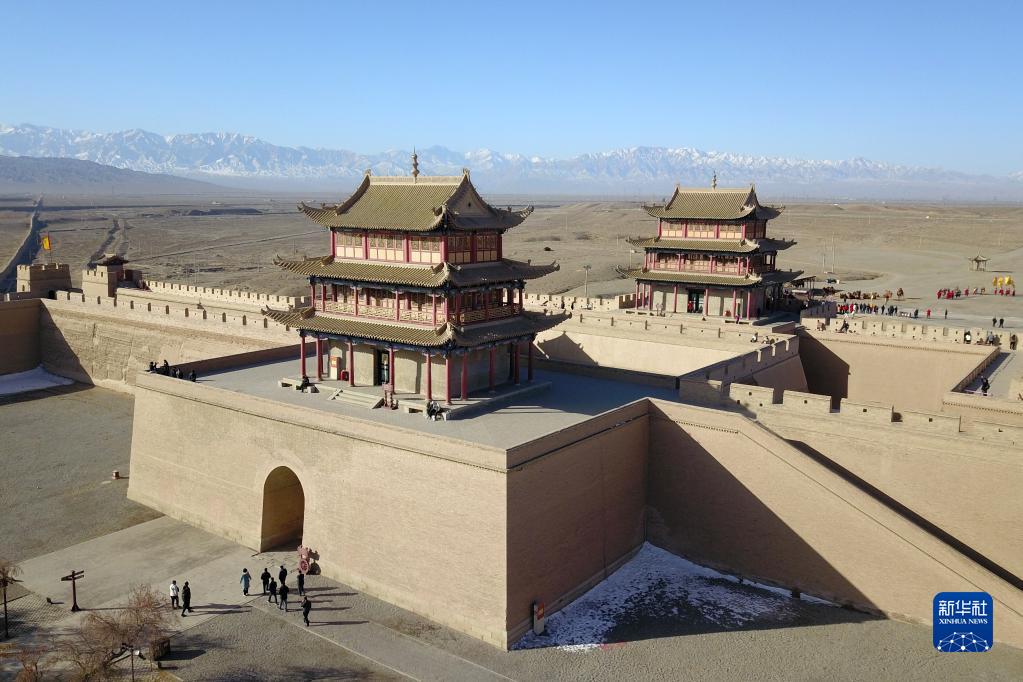 3月4日,游客在嘉峪關關城景區參觀游覽(無人機照片)。