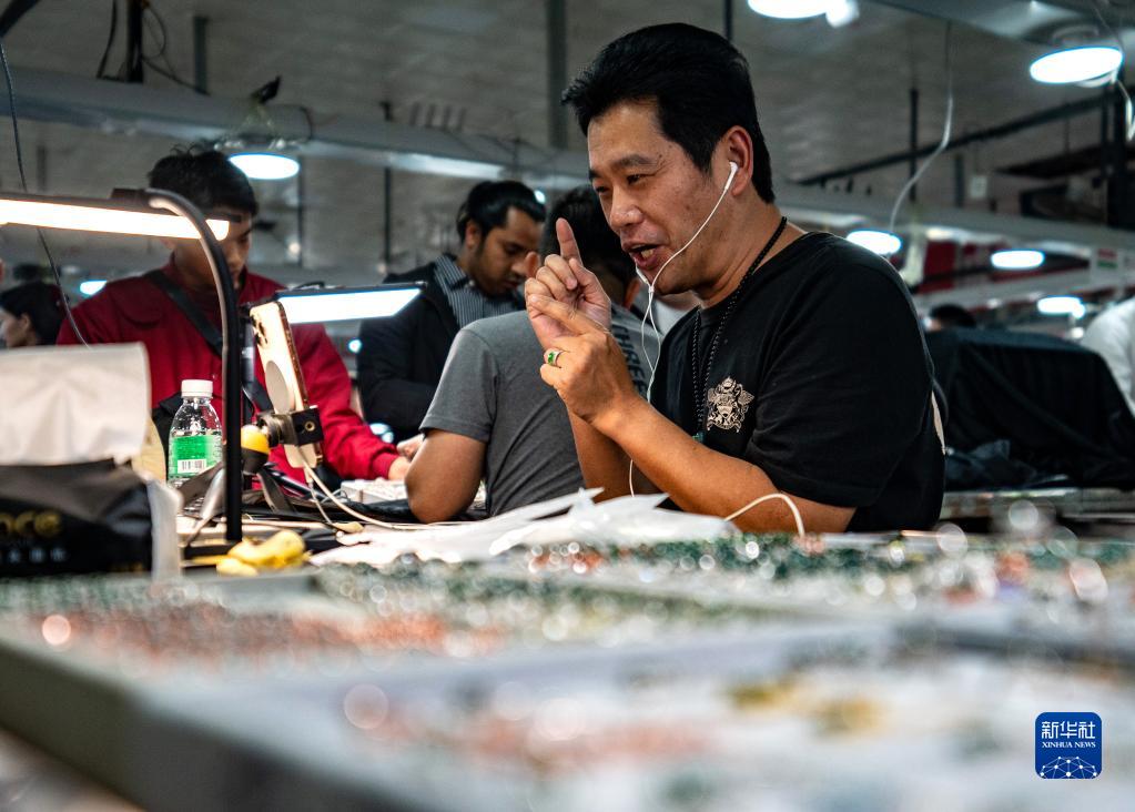 電商在云南省瑞麗市一處珠寶直播市場進行直播銷售(3月3日攝)。