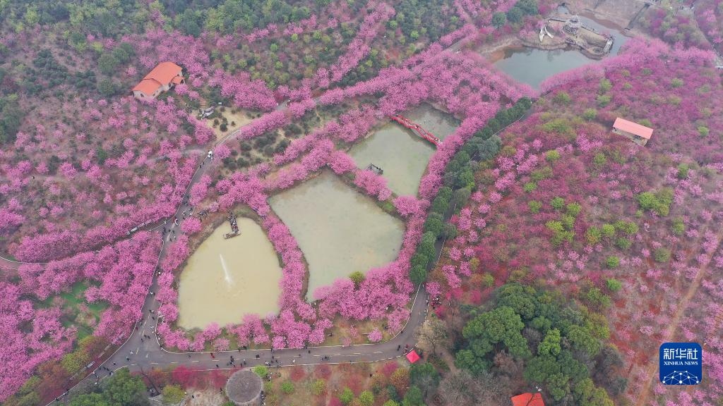 3月4日拍攝的常寧市羅橋鎮(zhèn)櫻花園景色(無人機(jī)照片)。