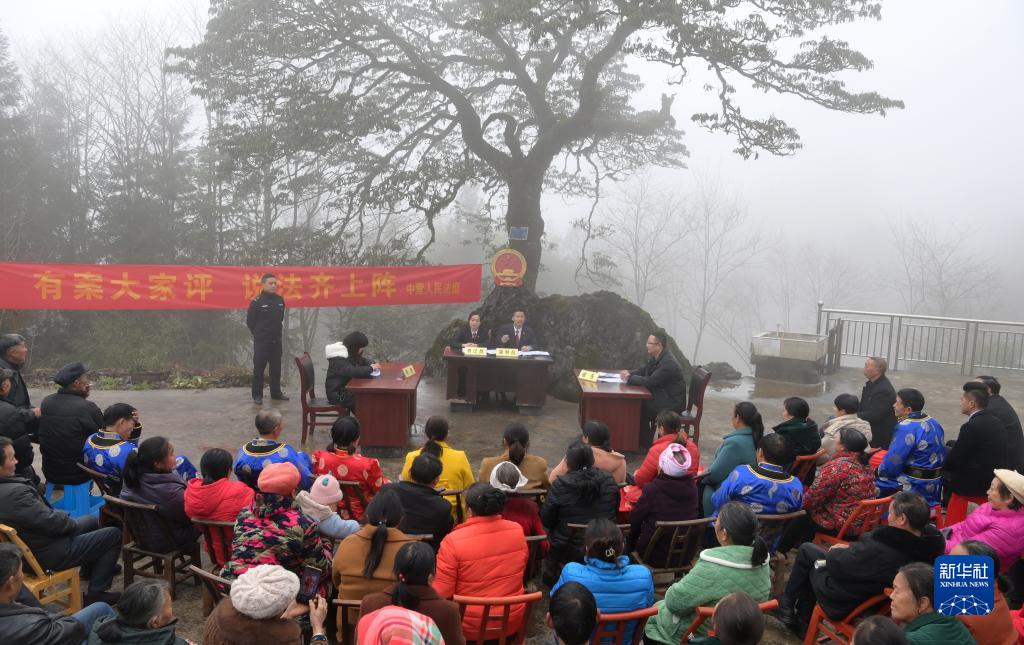 2月28日,法庭工作人員在鶴峰縣中營鎮(zhèn)三家臺村開展模擬庭審。近年來,湖北省鶴峰縣人民法院積極推行巡回送法進(jìn)鄉(xiāng)村活動,通過現(xiàn)場宣講、模擬庭審、法律咨詢等方式,普及法律知識,化解基層糾紛矛盾,助力鄉(xiāng)村振興。