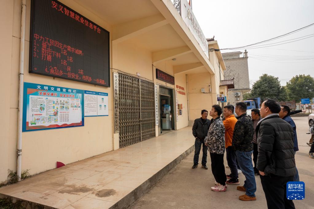 在江西省安義縣喬樂鄉馬溪村,當地村民在“村頭寶”平臺上瀏覽近期的企業招工信息(3月3日攝)。