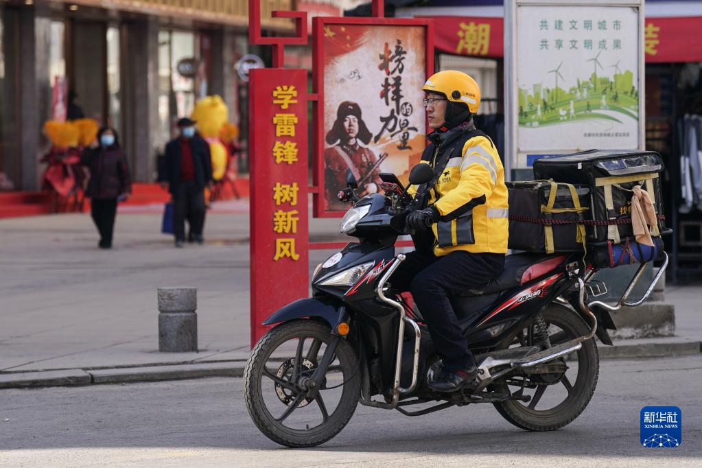 3月3日,“百姓雷鋒”盧旭東在送外賣。