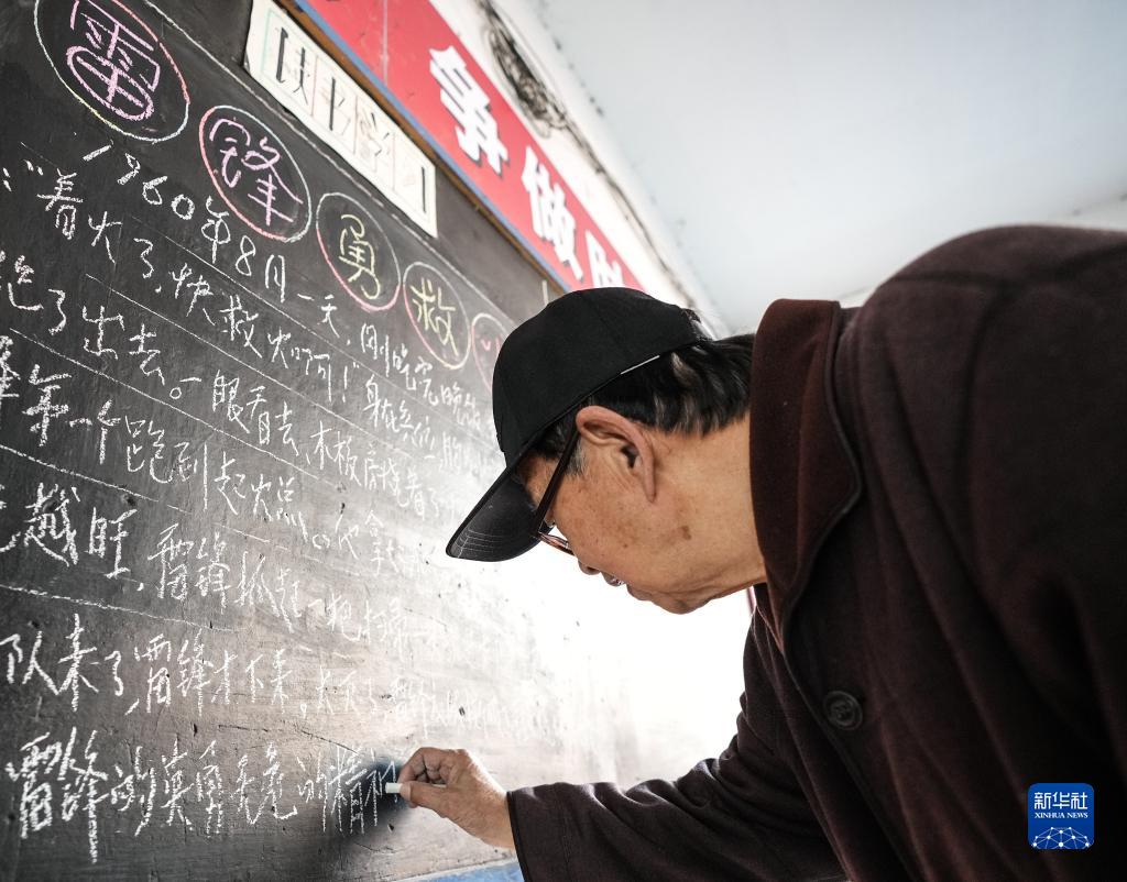 3月4日,“百姓雷鋒”姚恩亮在制作黑板報。