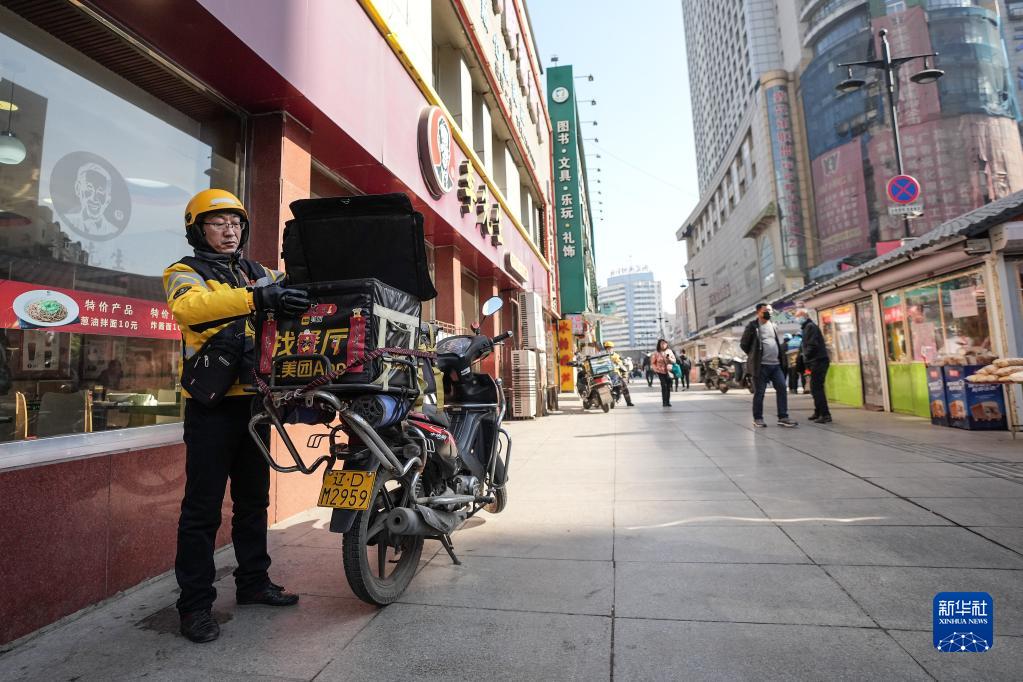 3月3日,“百姓雷鋒”盧旭東在取餐食,準(zhǔn)備給顧客送去。