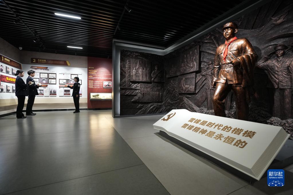 3月4日,“百姓雷鋒”團(tuán)隊(duì)雷鋒派出所的民警在派出所內(nèi)的展廳交流宣講雷鋒精神的心得。