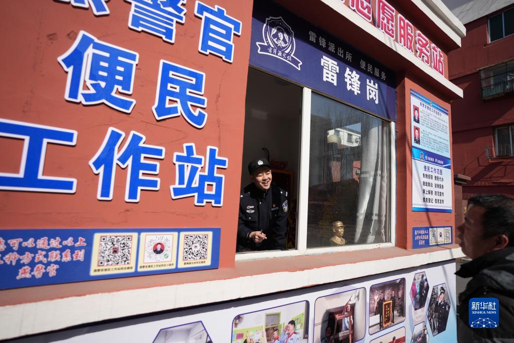 3月4日,“百姓雷鋒”團隊雷鋒派出所的民警在雷鋒社區(qū)的便民工作站為居民解答問題。