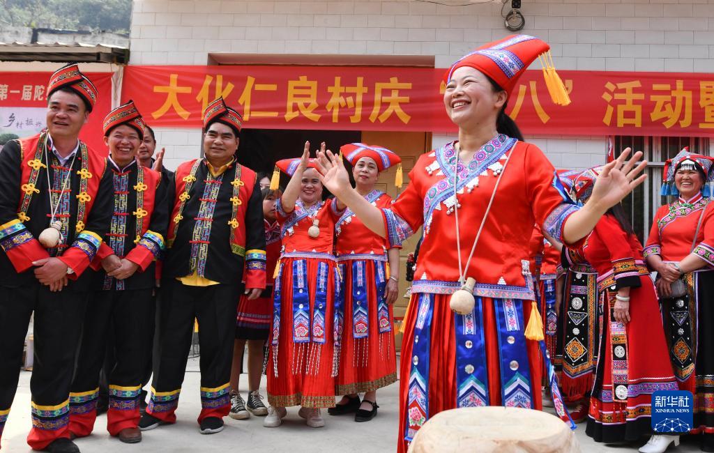當(dāng)日,廣西大化瑤族自治縣大化鎮(zhèn)仁良村舉辦“三八”國(guó)際婦女節(jié)陀螺比賽,壯、瑤、漢等各族婦女歡聚一堂,通過(guò)打陀螺、跳竹竿舞、品長(zhǎng)桌宴等豐富多彩的民俗體育和文化活動(dòng),迎接節(jié)日。