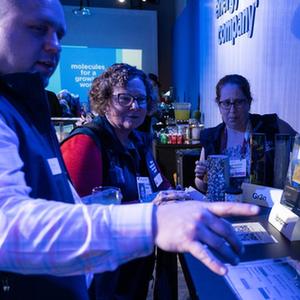 3月6日,在美國休斯敦舉行的“劍橋能源周”上,人們參加“創新集市”的一場活動。