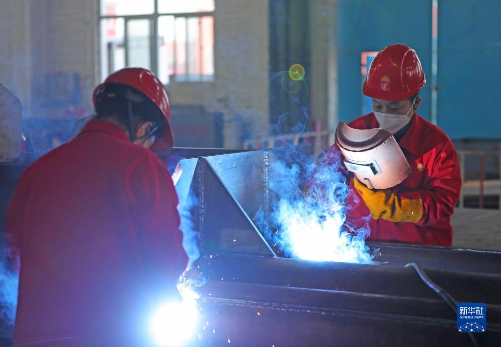 2月27日,女子焊工班成員在焊接車間作業。