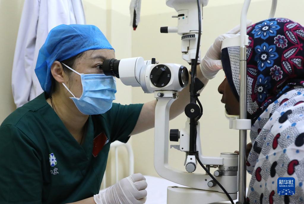2月23日,在坦桑尼亞桑給巴爾島納茲莫加醫院,董莉莉(左)為穆欣進行術前檢查。