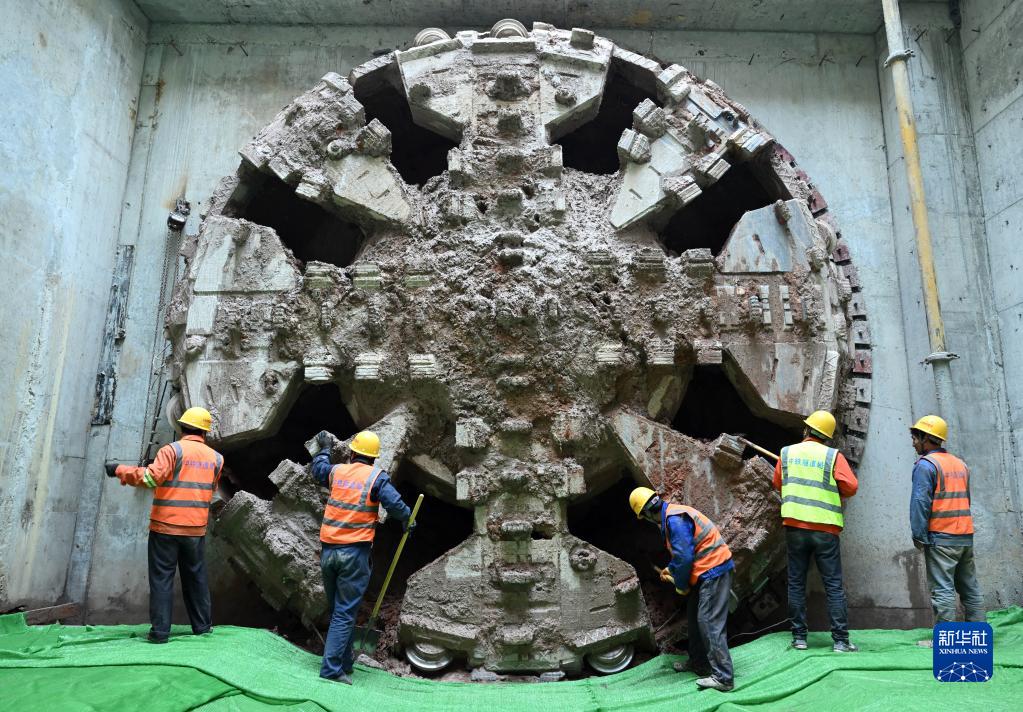 3月7日,在合肥軌道交通4號線南延線萬佛山路站至明珠大道站區(qū)間中間風井,工作人員對破洞而出的盾構(gòu)機進行清理。
