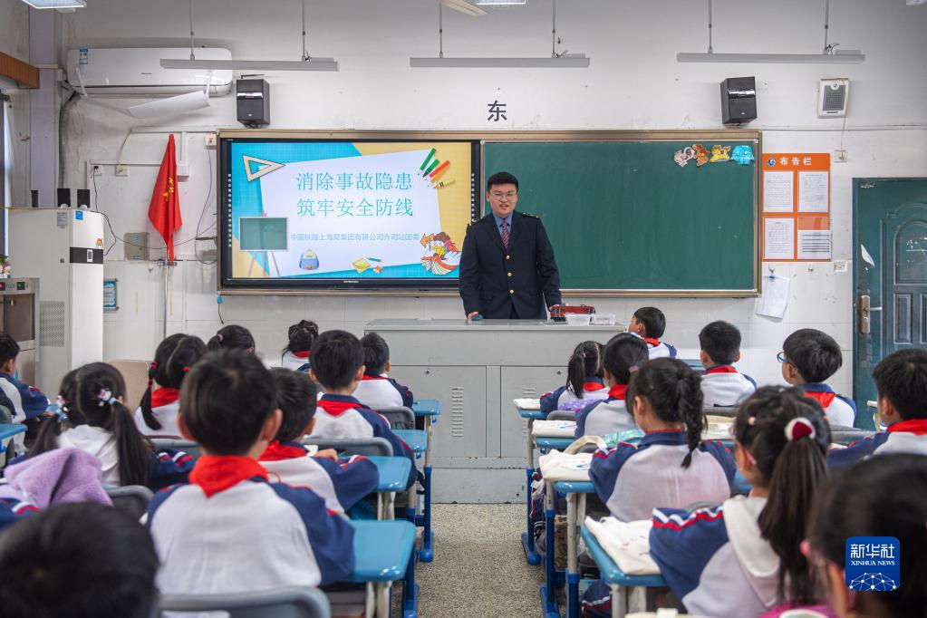 當(dāng)日,中國鐵路上海局集團(tuán)有限公司喬司站與鐵路喬司派出所的安全志愿者們來到位于鐵路沿線的杭州市臨平第一小學(xué),為學(xué)生們帶來一節(jié)鐵路安全知識課,強(qiáng)化學(xué)生們的鐵路安全意識與自我保護(hù)意識。