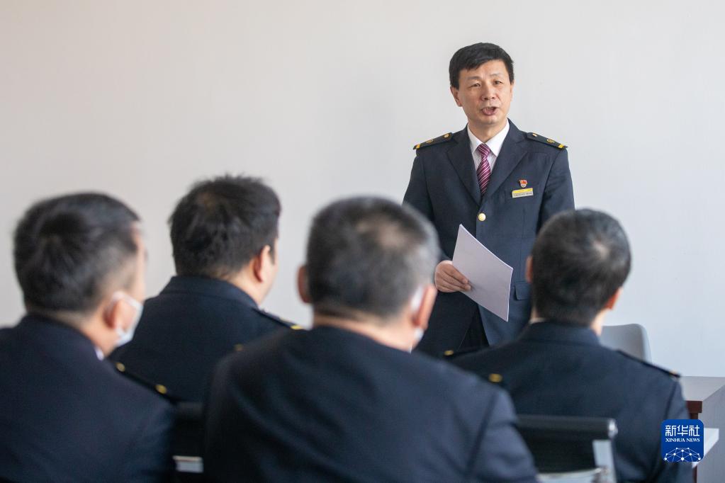 在中國鐵路哈爾濱局集團有限公司三棵樹機務(wù)段動車運用車間,邢云堂給同事講解高寒高鐵駕駛注意事項(2月17日攝)。