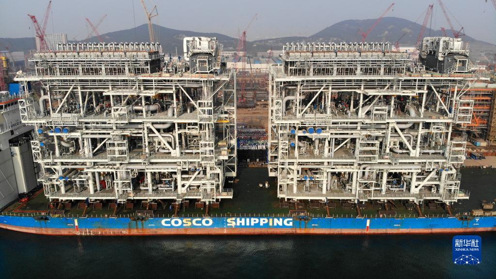 當日,由中國海洋石油工程股份有限公司承建的又一超大型國際能源裝備——加拿大LNG(液化天然氣)項目的最后兩個核心模塊在青島場地完工裝船,至此,該項目中由我國承建的模塊全部順利交付。