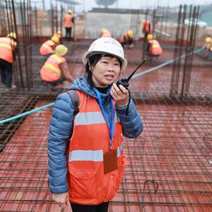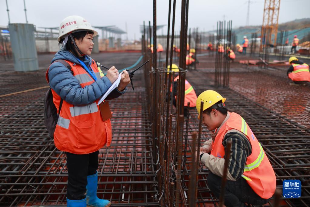 3月7日,中鐵八局女職工劉獻(xiàn)英(左一)在施工現(xiàn)場(chǎng)登記人員信息。