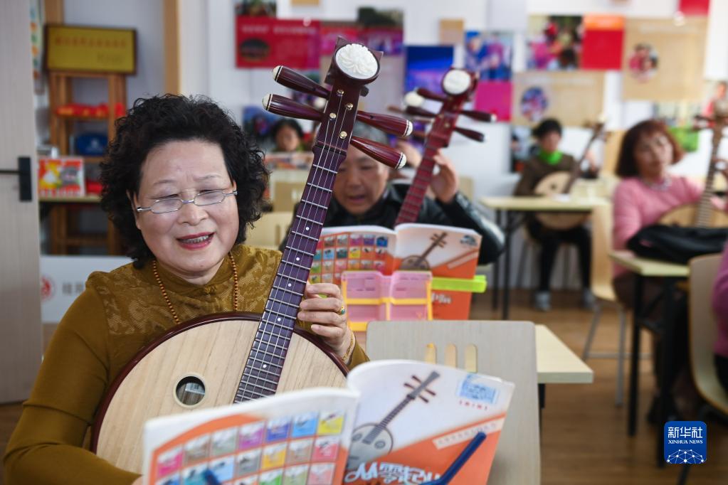 3月7日,在嘉興市南湖區(qū)桂苑社區(qū)的老年大學(xué)活動(dòng)室內(nèi),老人們?cè)诶蠋煹闹笇?dǎo)下學(xué)琴。