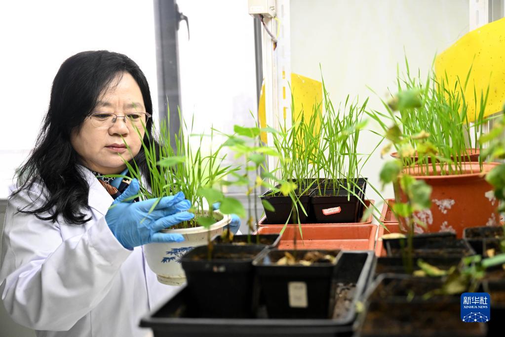 3月2日,中科院合肥物質科學研究院智能機械研究所黨委書記、副所長吳麗芳在植物培養間觀察植物長勢。
