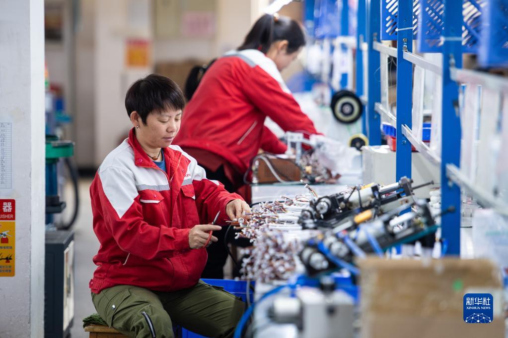 3月7日,在汨羅市神鼎山鎮(zhèn)豐倉(cāng)村的“巾幗車(chē)間”,工作人員在處理數(shù)據(jù)線(xiàn)線(xiàn)頭。