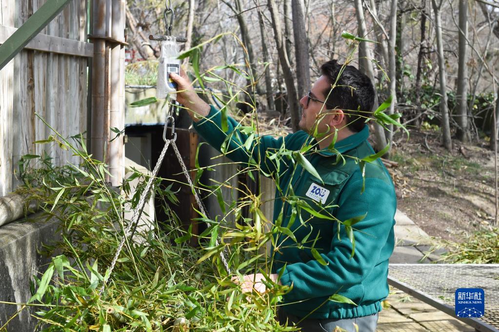 3月7日,大熊貓飼養員亞歷杭德羅·卡布雷拉在西班牙馬德里動物園工作。