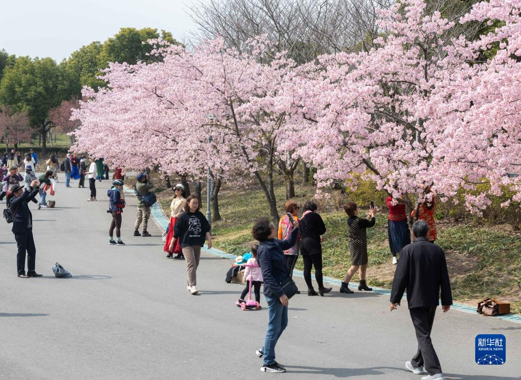 近日,上海市寶山區顧村公園的櫻花進入盛花期,吸引游客前來觀光賞花。目前,顧村公園櫻花種植面積達1500余畝,櫻花品種110種,櫻花數量16000余株。