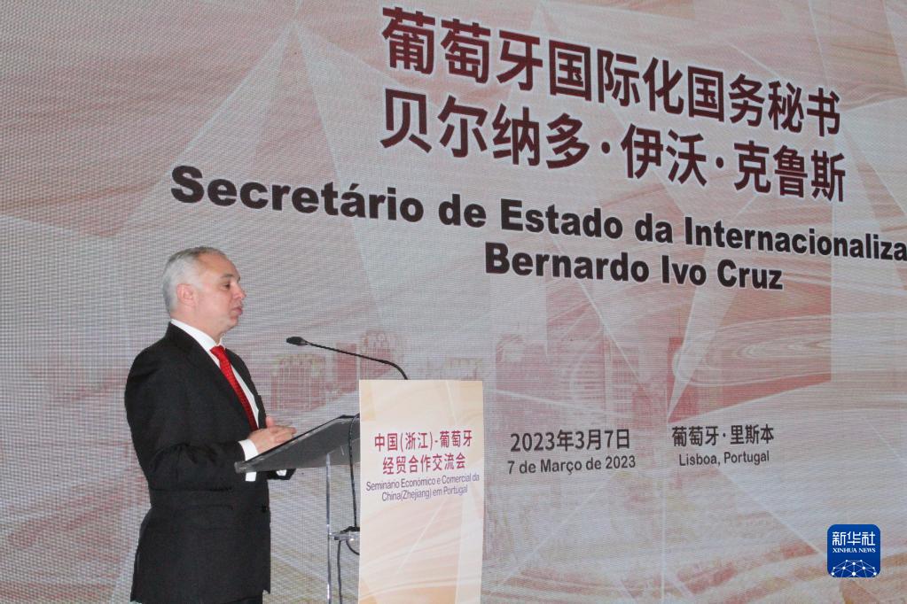 3月7日,在葡萄牙里斯本,葡外交部國際化國務秘書貝爾納多·克魯斯在交流會上致辭。