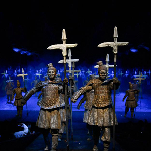 3月9日,演員在舞臺劇《西安千古情》中表演。