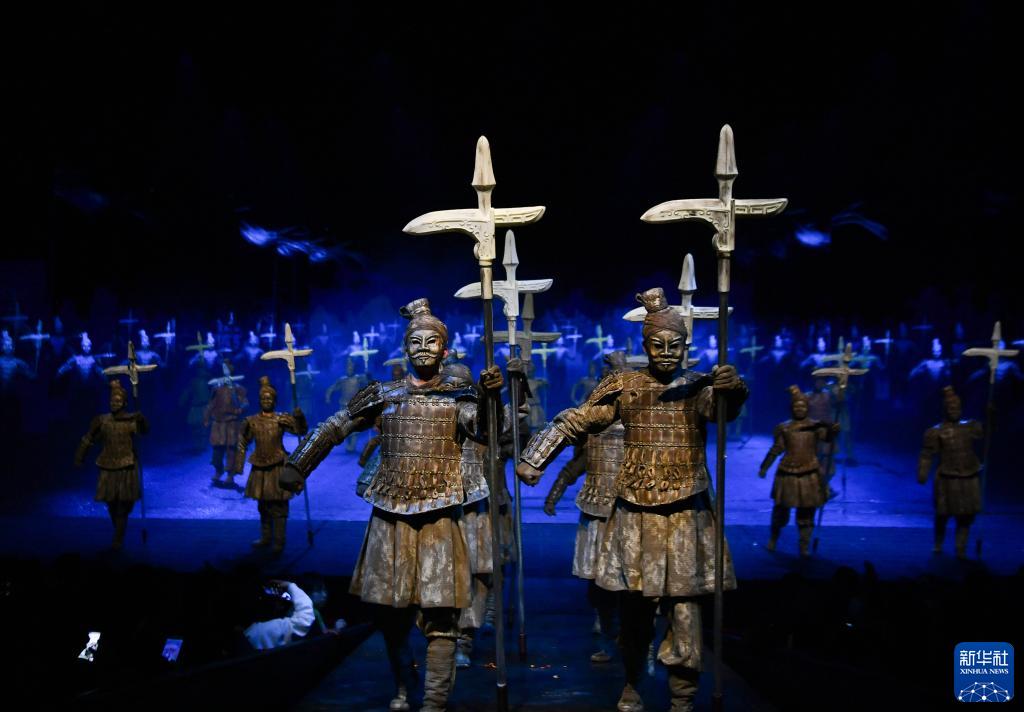 3月9日,演員在舞臺劇《西安千古情》中表演。