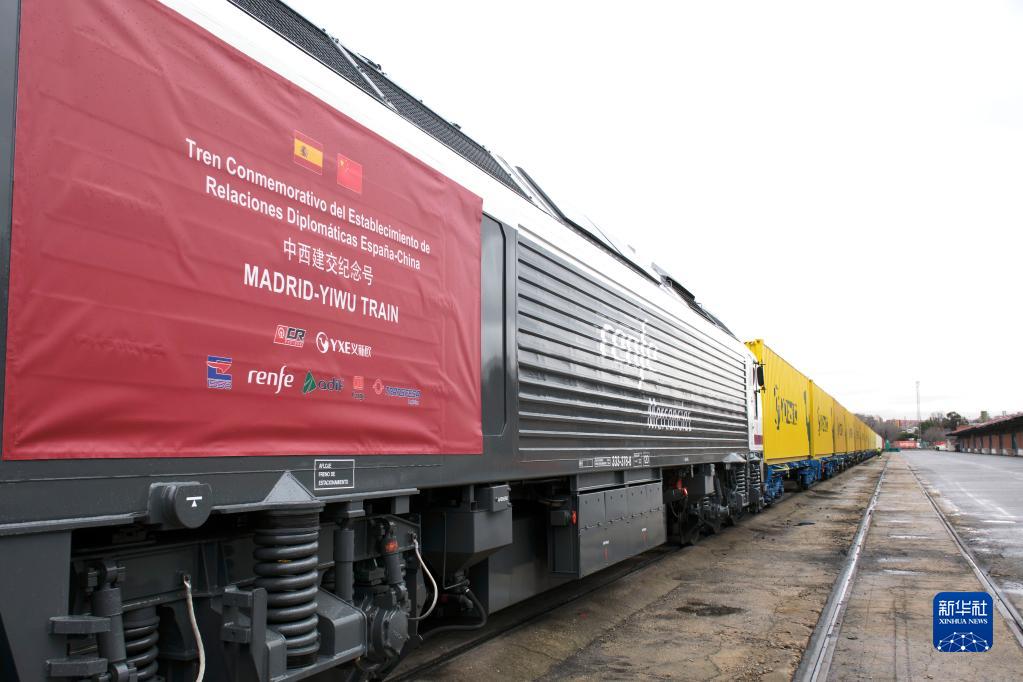這是3月9日在西班牙馬德里拍攝的“中西建交紀念號”中歐班列。