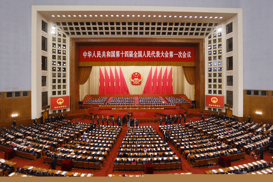 3月10日,中華人民共和國第十四屆全國人民代表大會第一次會議憲法宣誓儀式在北京人民大會堂舉行。